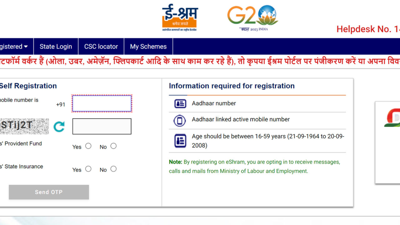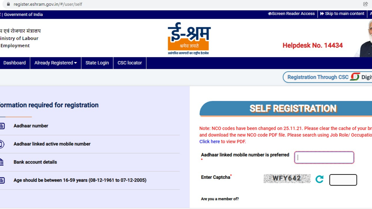 • सबसे पहले eshram.gov.in पर जाएं।