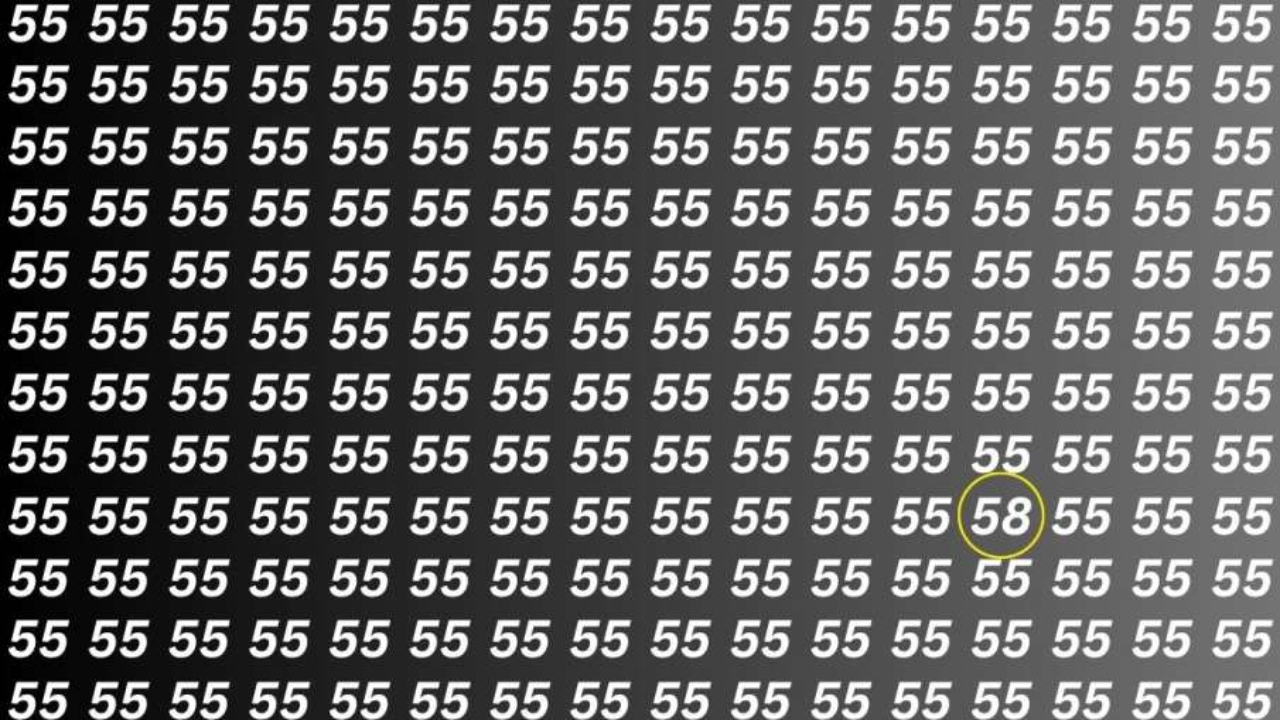 वायरल हो चुकी इस तस्वीर में आपको काले रंग की बैकग्राउड में कई “55” लिखे हुए नजर आएंगे। लेकिन इसी झुंड में कहीं पर “58” भी लिखा है, जिसे ढूंढ पाना हर किसी के बस की बात नहीं। यही इस ब्रेन टेस्ट का असली ट्विस्ट है। अगर आप 8 सेकंड के अंदर इस 58 को ढूंढ लेते हैं, तो आपकी नजरें काफी तेज है। लेकिन अगर कई मिनट बीत जाने के बाद भी जवाब नहीं मिलता, तो शायद आपको अपनी ऑब्जर्वेशन स्किल्स पर थोड़ा और काम करने की जरूरत है।
